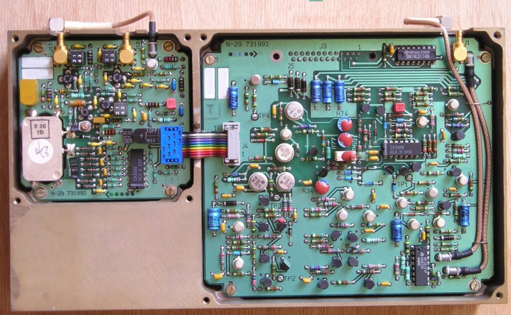 La configurazione circuitale è supereterodina a doppia conversione con valori di prima IF di 101.8MHz e di seconda IF di 1.4Mhz.